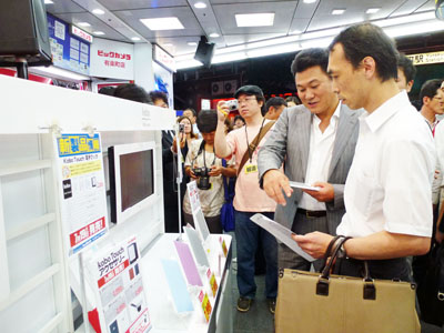 オープンに先駆け18日、ビックカメラ有楽町店の店頭で電子書籍端末「kobo Touch」の店頭プロモーションを開いた。三木谷浩史楽天代表取締役会長兼社長が、電子書籍端末「kobo Touch」のPRを実施した。