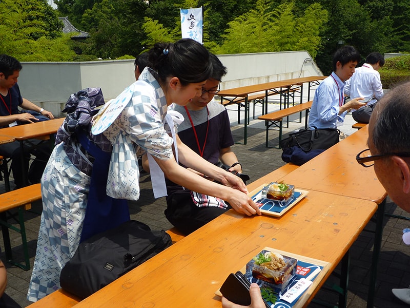30日には、檀れいさんを増上寺に招き、丸亀涼麺祭オープニングPRイベントを実施した。「丸亀製麺」のCMの世界観を踏襲した元禄文化をイメージした店舗の前で、女将に扮した檀れいさんが、氷の女将との記念撮影などを行った。
