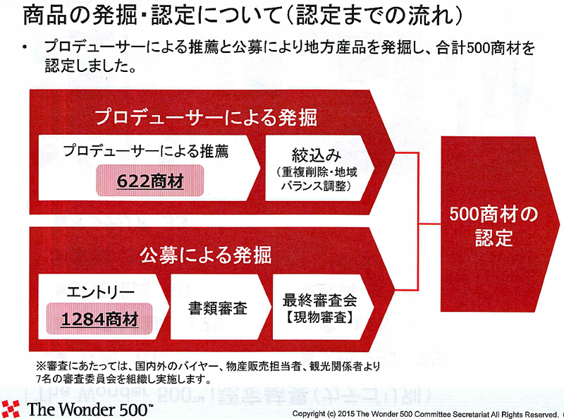 経済産業省が総額5億円の事業予算で補助する事業で、世界にまだ知られていない、日本が誇るべきすぐれた地方産品を選定し、海外に広く伝えていくプロジェクト「The Wonder 500(ザ・ワンダー・ファイブ・ハンドレッド)」で訴求する商品を選定した。