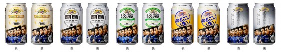 キリンビールは、「キリン一番搾り生ビール」「麒麟淡麗 生」「淡麗グリーンラベル」「キリン のどごし 生」「キリン 澄みきり」の5ブランドから、サッカー日本代表選手やザッケローニ監督をあしらった商品を発売する。