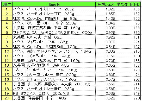 調理品 売上ランキング/4月14~20日、「ハウス バーモントカレー」の1位続く