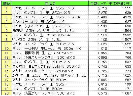 「アサヒ スーパードライ 缶 350ml×6」の1位が続いた。