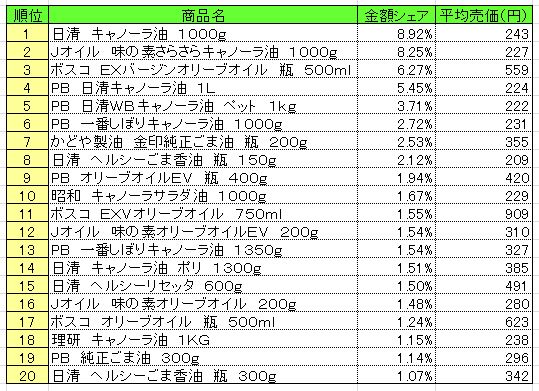 ■食用油 2014年5月12日~18日 ランキング  (提供:NPI CLOUD)