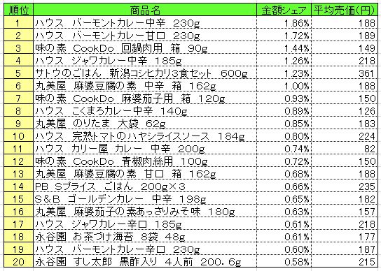 調理品 売上ランキング/6月23日~29日、「ハウス バーモントカレー」が1位