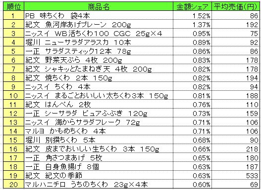 「PB 味ちくわ 袋4本」の1位が続いた。