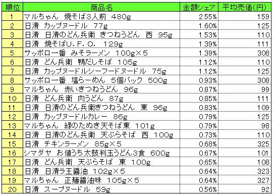 「マルちゃん 焼そば3人前 480g」の1位が続いた。
