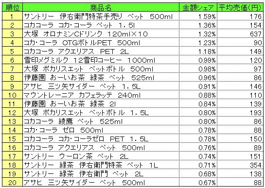 「サントリー 伊右衛門特茶手売り ペット500ml」が1位になった。