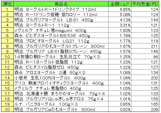 「明治 ヨーグルトRー1ドリンクタイプ 112ml」が1位だった。