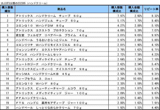1位には、「アトリックス ハンドクリーム チューブ 50g」が入った。
