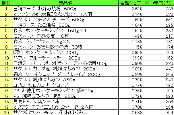 ホームメイキング材料 売上ランキング/6月8日〜14日、「日清フーズ お好み焼粉」が1位
