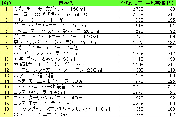 アイスクリーム類 売上ランキング/7月6日~7月12日、森永「チョコモナカジャンボ」が1位