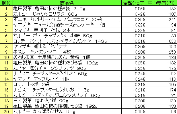 菓子 売上ランキング/7月20日~7月26日、「亀田製菓 亀田の柿の種」が1位
