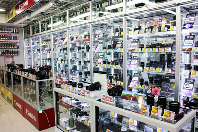 実店舗のメリットを最大限に生かすため、可能な限り商品は実機を展示。カメラコーナーでは、ほとんどの交換レンズを試すことができる。