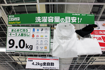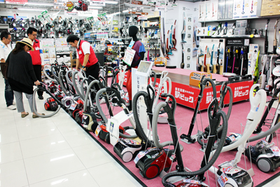 掃除機のコーナーでは、カーペットの上に商品を陳列し、40台~50台程度の商品を実際に試すことができる工夫をした。
