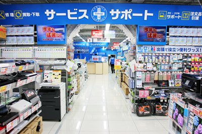 カメラ・パソコン・テレビ・スマートフォン・オーディオ・家電・時計・TVゲーム・BD/DVDソフト・おもちゃ・ゴルフ・自転車・フィットネス・寝具・お酒・メガネ・コンタクト・くすりなどフルラインの品ぞろえを展開する。