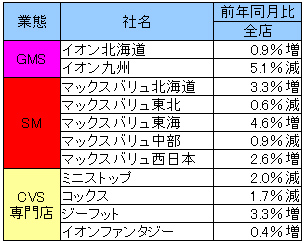 GMSで1店開店、1店閉店、SMで5店開店、2店閉店し、月末店舗数はGMS596店、SM1605店となった。