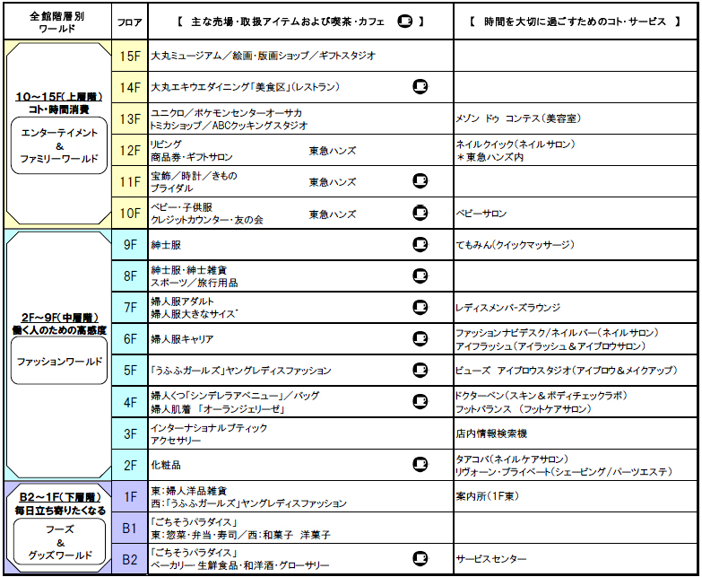 営業フロアは、地下2階から15階、増床部分は地下1階から15階(屋上)で投資額300億円、2011年度の売上目標は670億円を計画している。