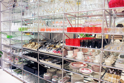 ららぽーと横浜店では、店舗奥に食器売場を展開。食器も4のコレクションの色合いやテイストに対応する形で商品づくりをしている。