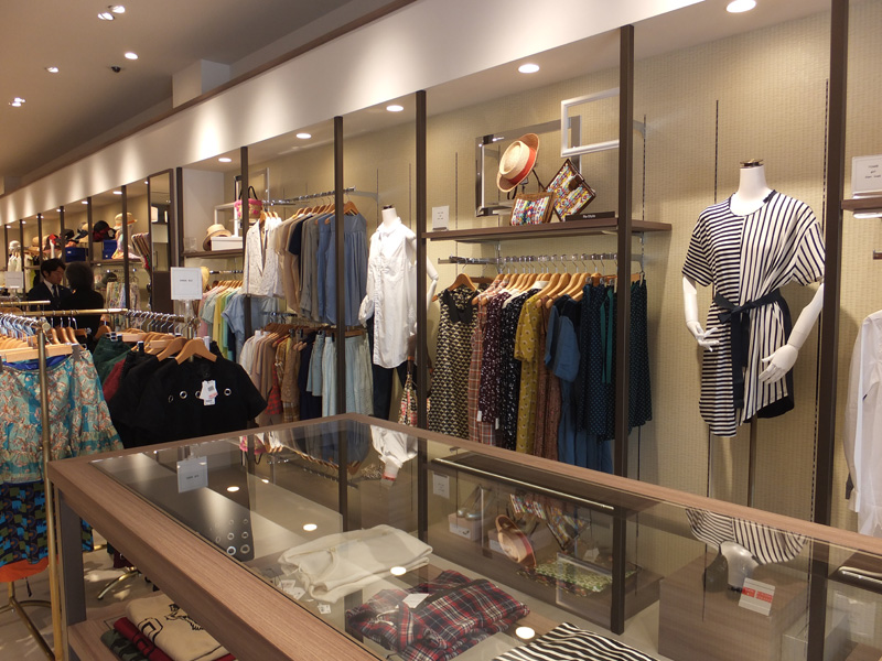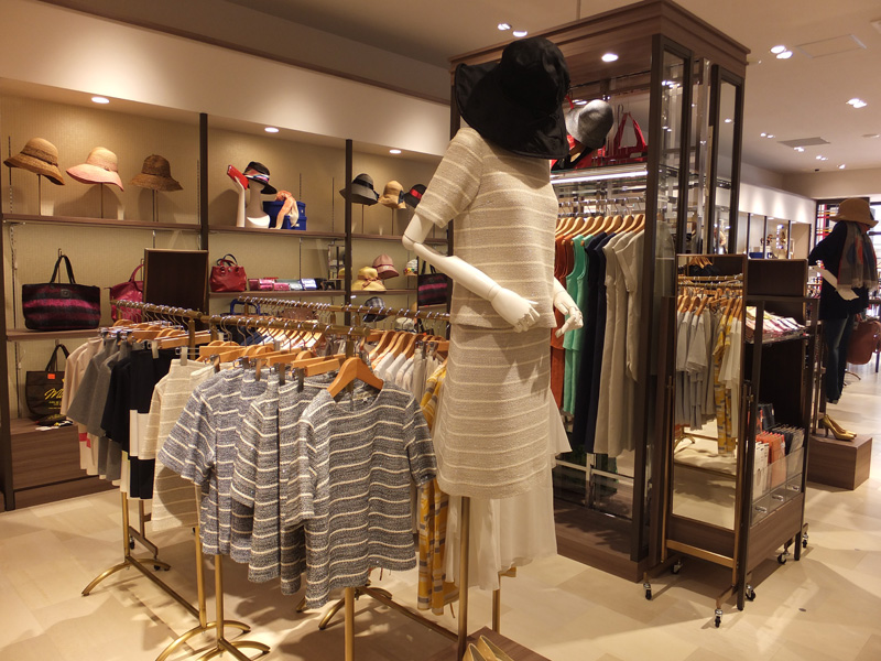 店舗面積は約230㎡で、うちメンズは約40㎡で展開する。レディースは約100型800SKUを展開し、メンズは約50ブランド程度を品ぞろえした。