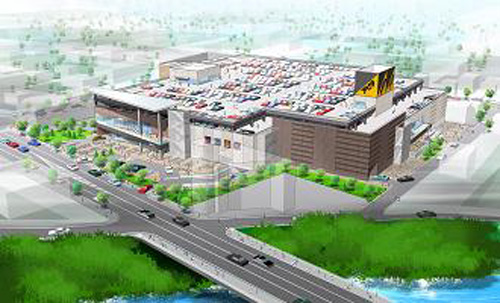 計画では、敷地面積約2万8000㎡、営業面積約2万300㎡、鉄骨造地下1階地上4階建で屋上駐車場のショッピングセンターを建設する予定だ。