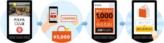 期間中、対象店舗で5000円以上の買い物をして、チェックインしてキャンペーンに応募すると、1000ポイントの楽天スーパーポイントを進呈する。