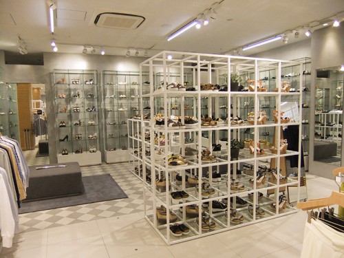 そのほか、壁面にはバッグ、店内には化粧品やアクセサリーをコーナー展開、店舗後方にシューズコーナーを展開し、1ブランドで足元から全身をコーディネートできる売場構成とした。