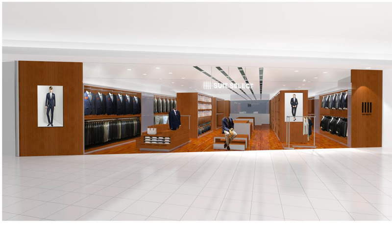 SUIT SELECTは、リアルスーツをコンセプトにアートディレクターの佐藤可士和氏監修のもと、ツープライス業態を展開。