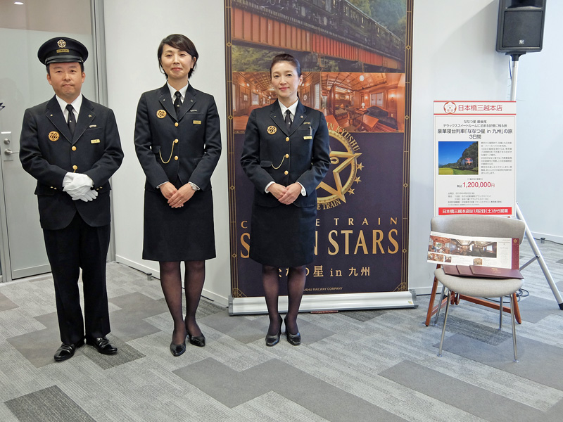 三越日本橋本店では、「ななつ星最後尾 デラックススイートルームに泊まる 記憶に残る豪華寝台列車ななつ星 in 九州の旅3日間」(1組2人・税込み120万円)を販売。