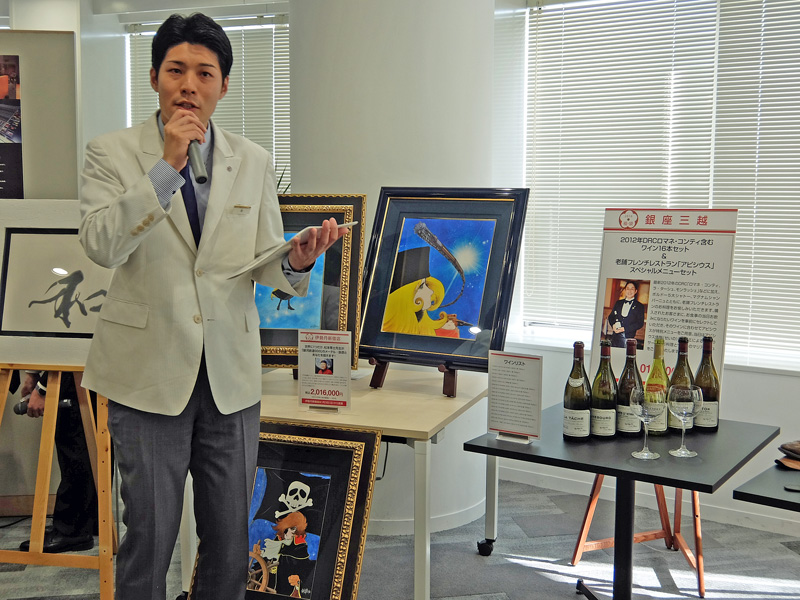 三越銀座店では、2012年DRCロマネ・コンティを含むワイン16本セット&老舗フレンチレストラン「アピシウス」でワインに合わせた特別メニューを楽しむ福袋(1人・201万6000円)を販売。