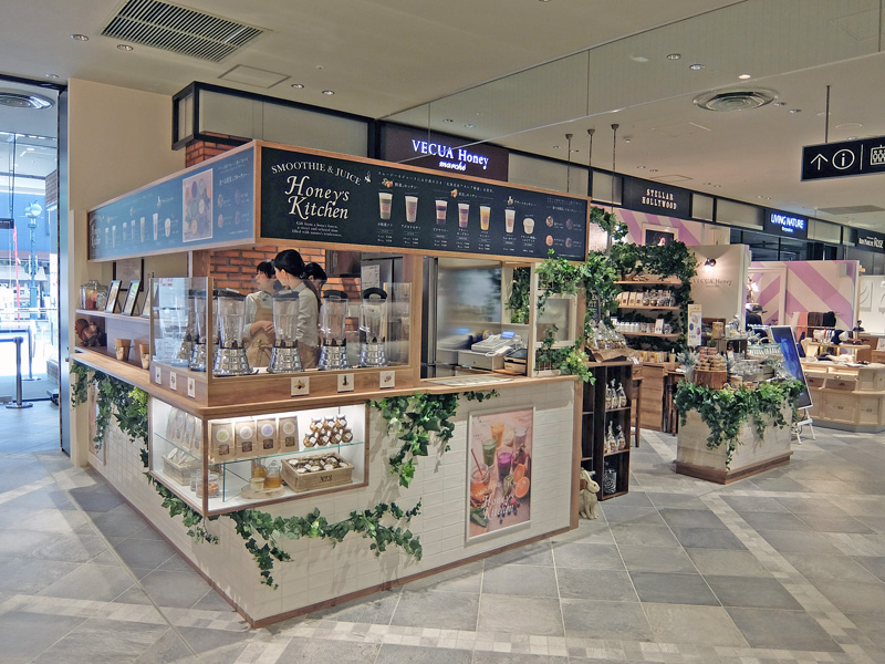 はちみつの暮らす森をテーマにすべてのアイテムにはちみつを配合したナチュラルコスメブランド「ベキュアハニーは、コスメとジュースバーの併設店をオープン。コスメのほか、はちみつ、果物、野菜を使用し、フレッシュでヘルシーなジュースやスムージーなどを販売する。