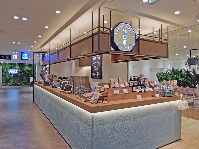 訪日外国人向けの「ツーリストインフォメーションカウンター」や本格的なドリップコーヒーを提供するカフェカウンター「猿田彦珈琲」を併設する。