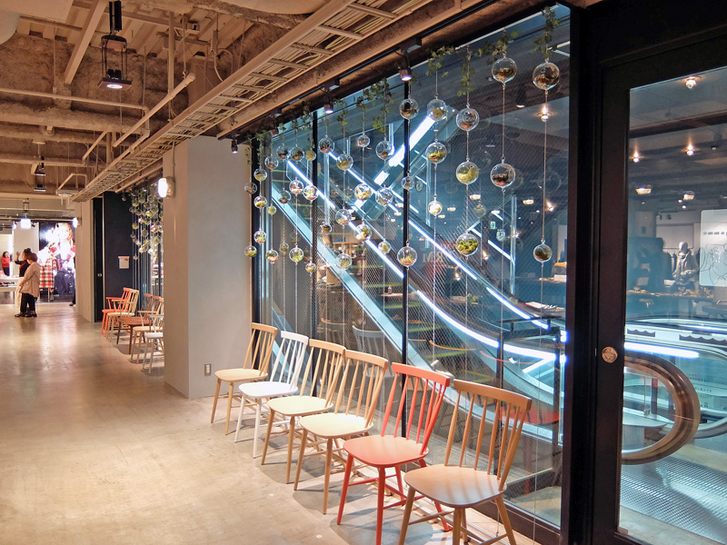 特に買い物がなくてもふらっと立ち寄れ、渋谷の町全体を散策するための新しい待ち合わせ場所を目指し、エスカレーター脇には、休憩スペースを豊富に配置した。