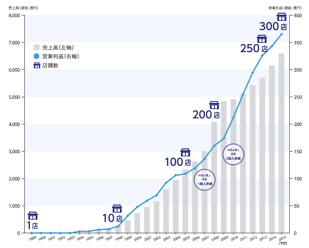 1980年にジャスト(現:ドンキホーテホールディングス)を設立、1989年に総合ディスカウントストア「ドン・キホーテ」第1号店を開店して以来、顧客最優先主義に基づく独自の戦略やM&Aにより着実に業績・店舗拡大を図った。