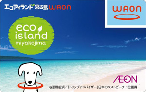 全国のWAON加盟店で、本カードを使って支払った金額の一部を宮古島市に寄付し、市のエコ活動に役立てるという。