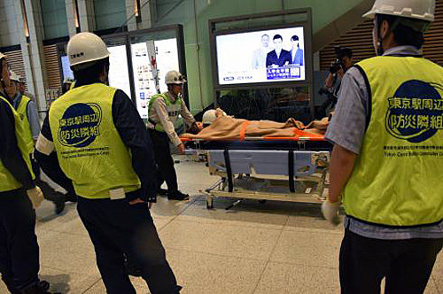 そのほか、危険度判定の結果、継続使用可能と判定された建物内で千代田区医師会や聖路加メディローカスと連携し負傷者対応訓練を実施した。
