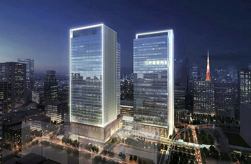 外装デザインは、世界的な建築設計事務所であるKPF(Kohn Pedersen Fox Associates)が担当。東京のスカイラインに浮かび上がる、2棟のオフィスタワーの門型フレームは、プロジェクトや国際都市・東京を訪れる人々を迎え入れる「ゲート」をイメージしてた。