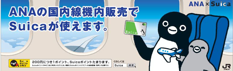 全日本空輸(ANA)とJR東日本は10月1日、ANA国内線機内販売で、JR東日本が発行する電子マネー「Suica」による支払いができるサービスを開始する。