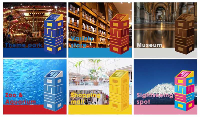 設置場所は、テーマパークや美術館、水族館・動物園やサービスエリアなど、より人々の生活シーンに密着したさまざまなエリアを想定する。