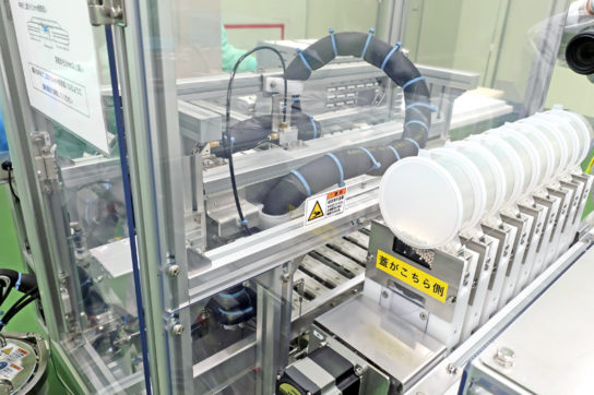 自動化技術により、コマへ土台となる寒天(約20mg)を注入し、種まきまでを実施する。コマへの播種作業の良品率は95%で、ほぼ検品の必要はない。