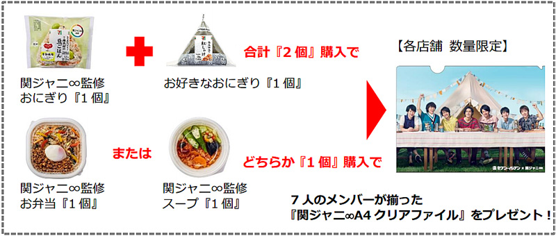 今回のキャンペーンでは、メンバー監修のオリジナル商品を購入すると「セブン‐イレブン限定関ジャニ∞A4クリアファイル」を数量限定で進呈する。