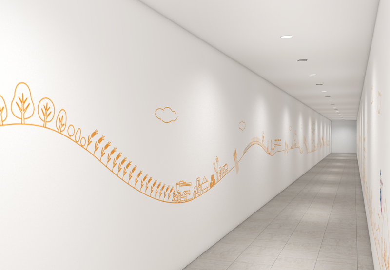 来館者に描いてもらったオリジナルの「中華まん」が投影される壁面メディアアートでは、アイデアをシェアすることで来館者同士や中村屋とのコミュニケーションを生み出し、思い出づくりにつなげる。