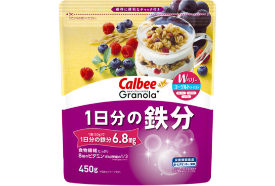 カルビーは6月3日、シリアルの新ブランド「Granola+(グラノーラプラス)」第1弾として「プロテイン in」(420g)「1日分の鉄分」(450g、各想定価格税込650円前後)を発売する。