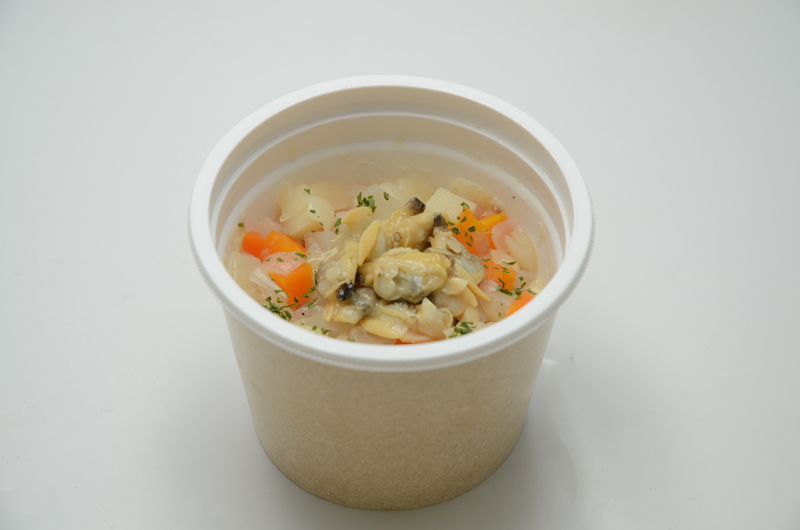 「具たっぷりクラムチャウダー」は、具材比率を昨年の約40%から約50%へアップ。具材のカットサイズを見直し、食感を向上させている。