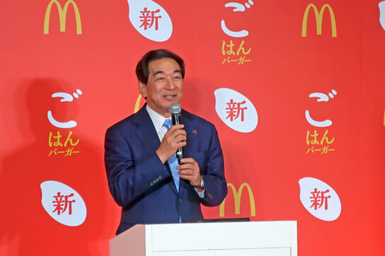 メニューマネジメント部の若菜重昭上席部長は、「マックの味がお米で味わえることを重視して商品開発をした。そのため、具材・ソースは通常メニューと同じものを使用している。マックの具材にあうお米のバンズを開発するのが大変だった。定番メニュー約20種と、お米のバンズを組み合わせて、ベストな組み合わである3つのメニューを商品化した。店舗での再現性やオペレーションの負荷を考慮したほか、しょうゆの配合、香りのたち方、食感、ごはんらしい粒感などを生かすバンズづくりに苦労した。具材・ソースは、通常メニューと全く同じのため、サイドメニューのポテト、コカ・コーラとの相性も抜群にいい」と商品開発のこだわりを説明した。