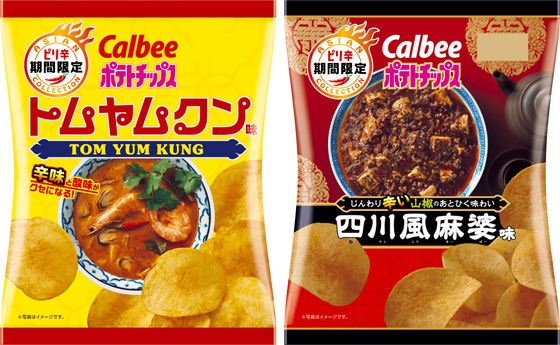 カルビーは2月29日、「ポテトチップス トムヤムクン味・四川風麻婆味」をコンビニエンスストア限定で発売する。