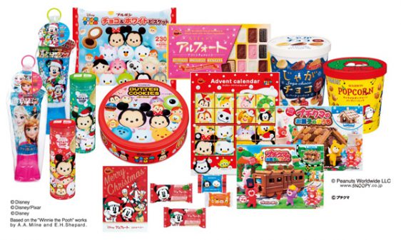 その他に、「バタークッキー缶(ディズニーツムツム)」、「ポテトチップしお味Xmas(ディズニーツムツム)」、「キャラメルポップコーンパーティーパックXmas(スヌーピー)」などをライナップした。