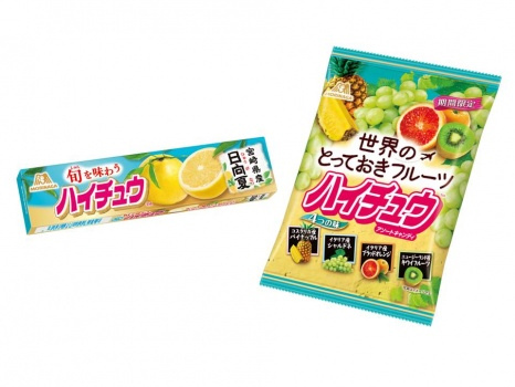 森永製菓は2月21日、「ハイチュウ 宮崎県産日向夏」と、世界各地のこだわりフルーツを集めた「世界のとっておきフルーツハイチュウアソート」を発売する。