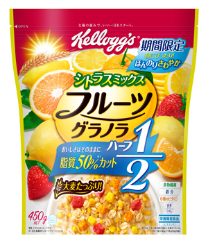 日本ケロッグは3月上旬、「フルーツグラノラ ハーフ」シリーズから、ケロッグ初のシトラスフレーバーを採用した「フルーツグラノラ ハーフ シトラスミックス」を期間限定で発売する。