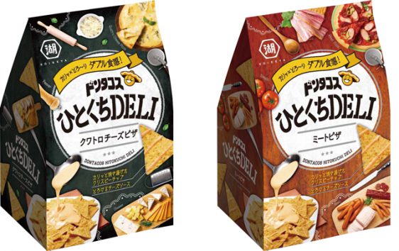 湖池屋は3月27日 おつまみ以上食事未満の新スナック「ドンタコスひとくちDELI」シリーズを立ち上げ、「ドンタコスひとくちDELI クワトロチーズピザ・ミートピザ」をコンビニエンスストア先行で発売する。