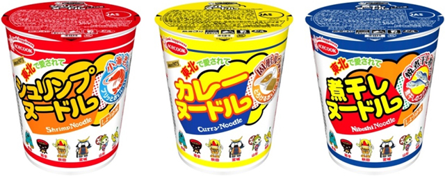シュリンプヌードル、カレーヌードルのロングセラーの味わいはそのままに、新たに3品目として東北で人気の煮干しを使った新商品が仲間に加わった。
